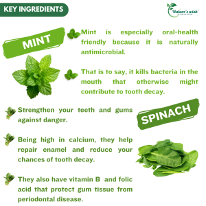 Ingredients : Neem, Mint, Amla, Harad, Baheda, Pippali, Clove, Cinnamon, Mirch, Spinach, South, Suryakshera, Yash Bhasm, Miswak etc.
